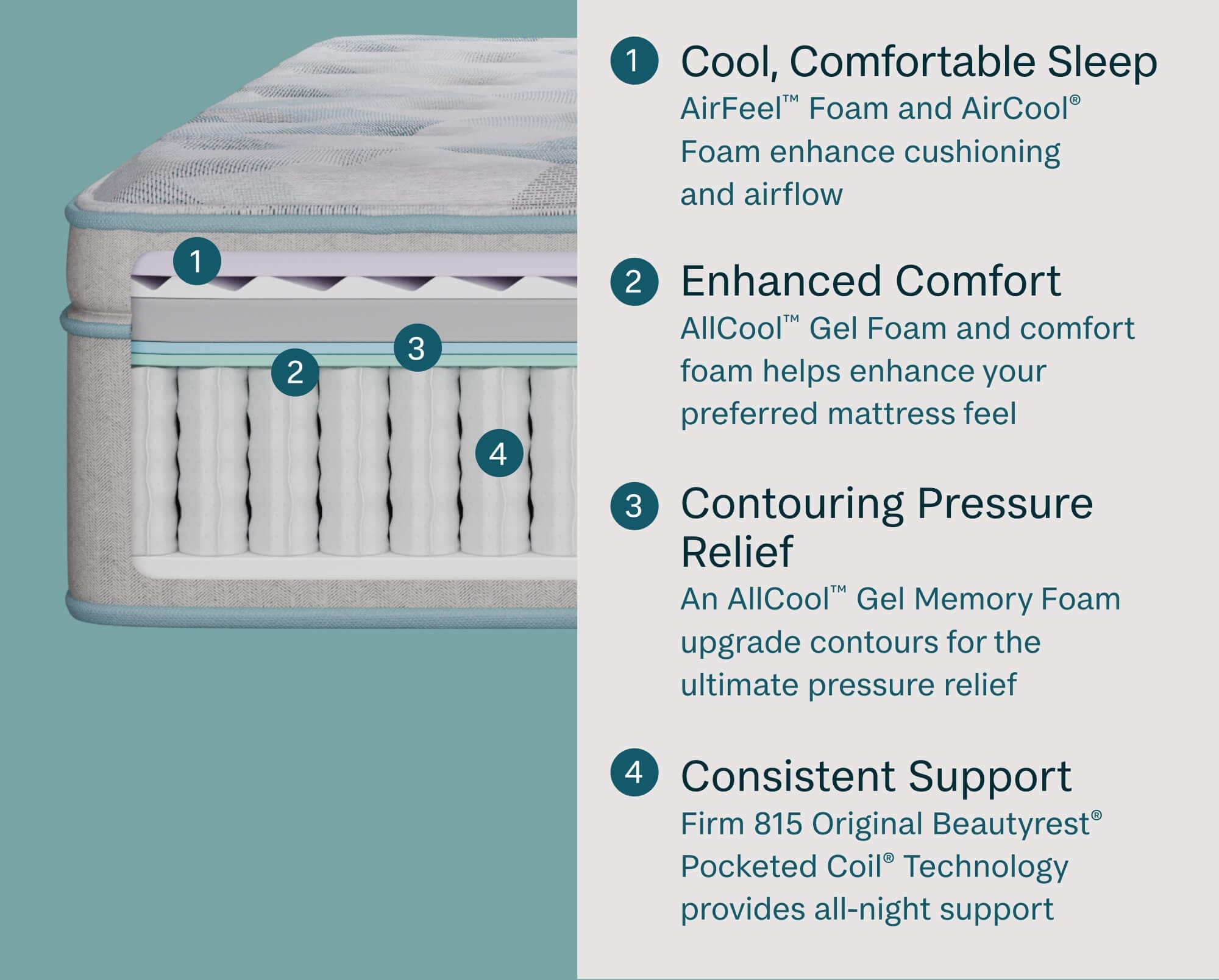 This 14.25” Medium Pillow Top mattress features a quilted pillowtop, premium memory and comfort foams, and Firm Original Beautyrest® Pocketed Coil® Technology for consistent, supportive sleep at a value designed for your lifestyle.